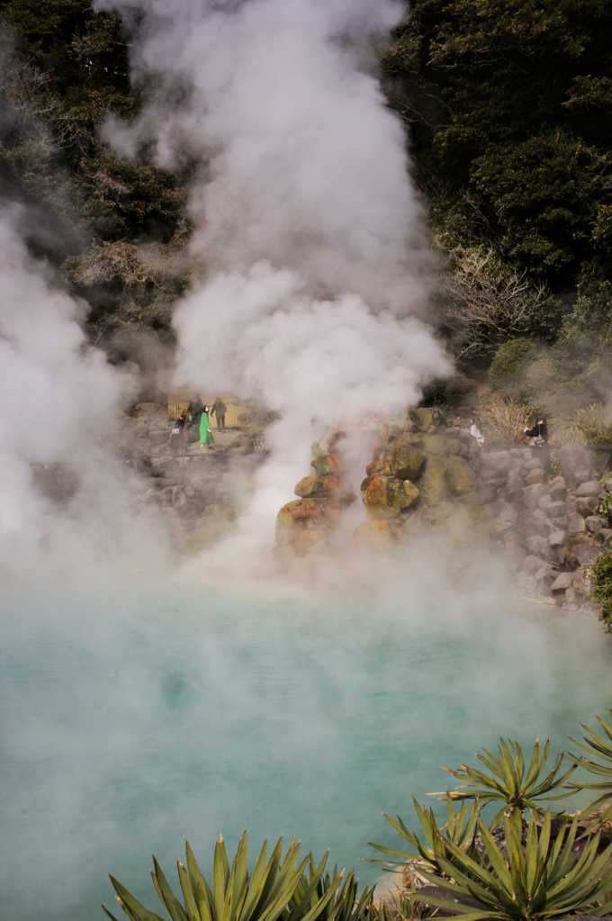 Beppu è la porta d’accesso al Kyushu per i viaggiatori che arrivano dal mare. Una città tranquilla e forse un po’ sonnolenta, amata dai giapponesi per le decine di onsen – le stazioni termali – che ospita. La sua importanza come capitale termale non è un caso: se l’intero Kyushu è una delle maggiori zone vulcaniche nipponiche, questo territorio in particolare è caratterizzato da diversi fenomeni di vulcanismo secondario; fumarole, solfatare e sorgenti calde costituiscono una fonte di inestimabile ricchezza per gli abitanti locali, che da tempo hanno imparato a sfruttare queste risorse a proprio vantaggio. Non è raro vedere nuvole di vapore bollente fuoriuscire dai comignoli degli onsen o addirittura dai tombini e dai canali di scolo, soprattutto nel periodo invernale; un panorama famosissimo nel Paese, che non potrebbe esistere senza la forza della natura. Io non sono qui per le terme, a dire il vero; nonostante sia la mia terza volta nel Paese non sono ancora riuscita a vincere l’imbarazzo e ad accettare l’idea di fare il bagno nuda insieme a persone sconosciute (del resto faccio fatica anche a mettermi in costume per andare al mare o in piscina). Mi trovo a Beppu perché è una delle località più importanti del Giappone meridionale e sono curiosa di vedere i suoi celebri jigoku… Oltre al fatto che il suo nome mi ha sempre fatto sorridere, lo ammetto.