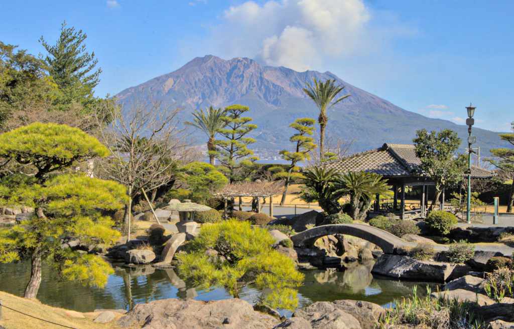 Prima di ammirare il Sakurajima da vicino, godetevi il panorama dal Sengan-en, il meraviglioso giardino che circonda la villa un tempo appartenente alla famiglia Shimadzu. Una lunga passeggiata tra boschi, fiumi e tempietti, sempre accompagnati dall’immancabile vulcano sullo sfondo; con 1500 yen è possibile visitare anche l’interno della residenza e il piccolo museo lì a fianco. Il giardino ospita inoltre diverse case da tè e negozi di souvenir, dove si possono acquistare le opere dei mastri vetrai locali, che soffiano e intagliano abilmente il cristallo Satsuma Kiriko, famoso in patria come da noi lo è il vetro di Murano.