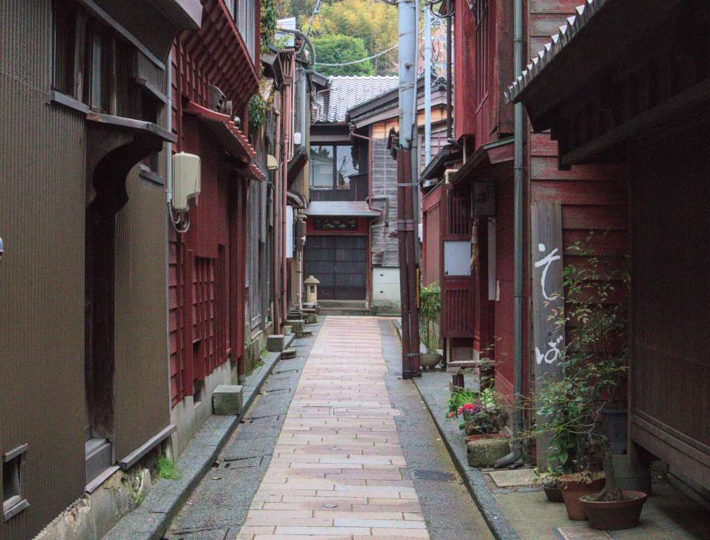 Ma Kanazawa non è celebre solo per il Kenroku-en; la città infatti è considerata da molti giapponesi come una “piccola Kyoto” per la sua importanza a livello culturale e architettonico. Ci immergiamo quindi tra le viuzze del higashi-chaya, il quartiere delle geisha, e di nagamachi, il quartiere dei samurai, per vedere se la bellezza locale può rivaleggiare con quella dell’antica capitale. Nel primo le case da tè (chaya) con il tipico motivo a grata sono perfettamente conservate e, anche se molte sono state riconvertite in negozi o ristoranti, ne rimangono alcune che continuano a ospitare spettacoli ed esibizioni delle geisha esattamente come in passato. Il quartiere dei samurai è più silenzioso e tranquillo, si sente solo il mormorio dell’acqua che scorre nei piccoli canali ai margini delle strade, l’eco dei passi sulla pietra e il cinguettio degli uccellini. Il profumo di muschio, terra e legno mi ricorda effettivamente la mia amata Kyoto per un breve attimo. Prima di andarcene scopriamo, un po’ nascoste, alcune residenze un tempo abitate dalle famiglie dei samurai di classe “inferiore”; l’ingresso è gratuito, ma sorprendentemente non c’è nessuno all’interno. I pullman di turisti si sono fermati ai grandi classici, difficilmente arriveranno qui.